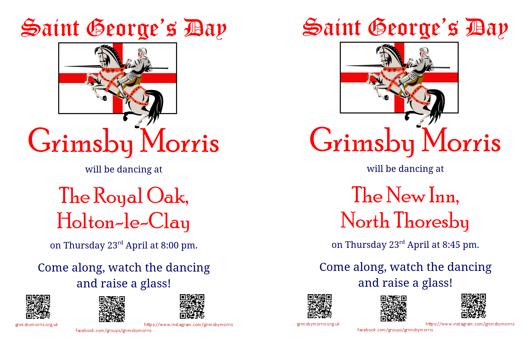 Grimsby Morris will be out celebrating our patron saint's day as we usually do. Our own Saint George will hopefully accompany us so dragons would be advised to stay away.